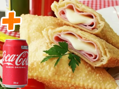 / Combo pastel presunto e queijo + Coca lata 350ml